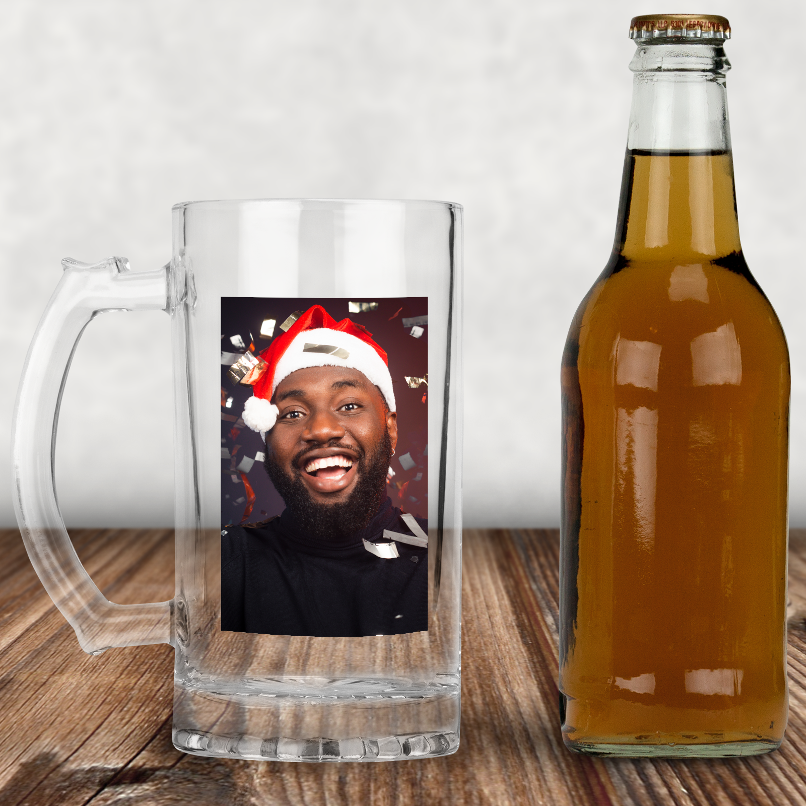 Personalised Photo or Text Tumbler Photo Beer Drinking Glass With Handle