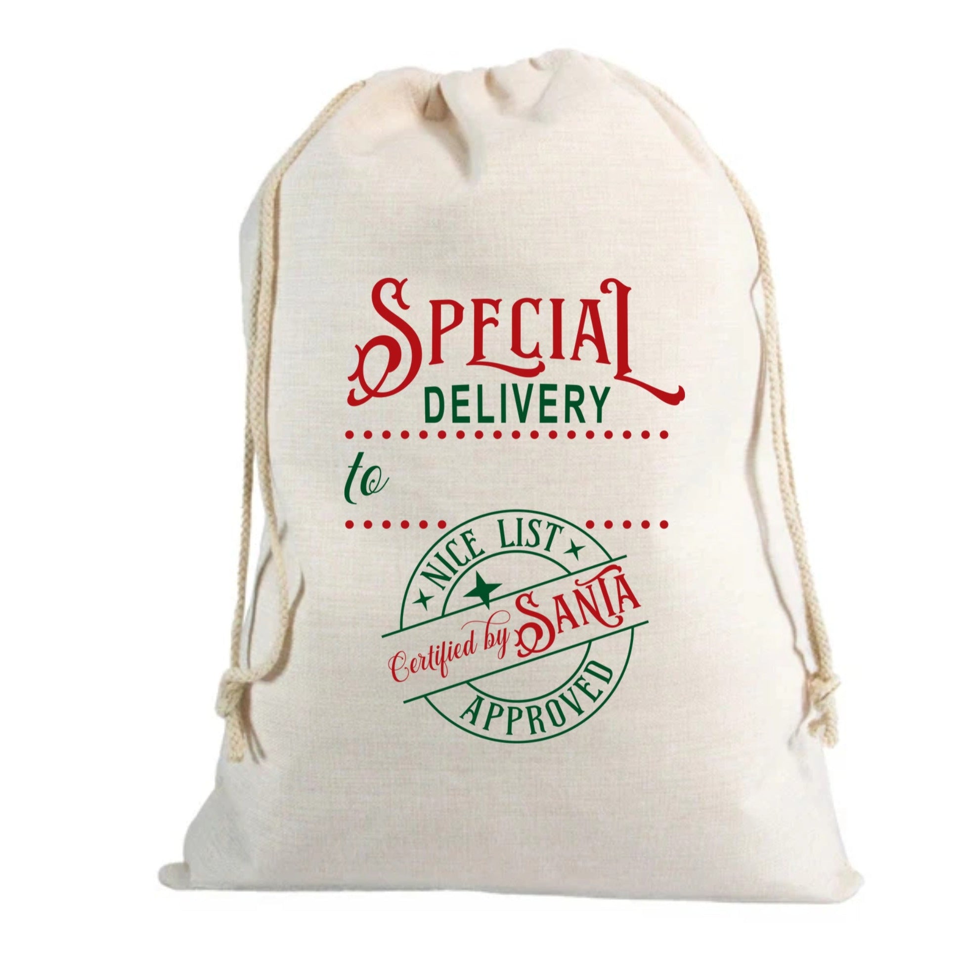 🎅 Personalised Special Delivery Printed Custom Name Linen Santa Sack – 70 x 85cm