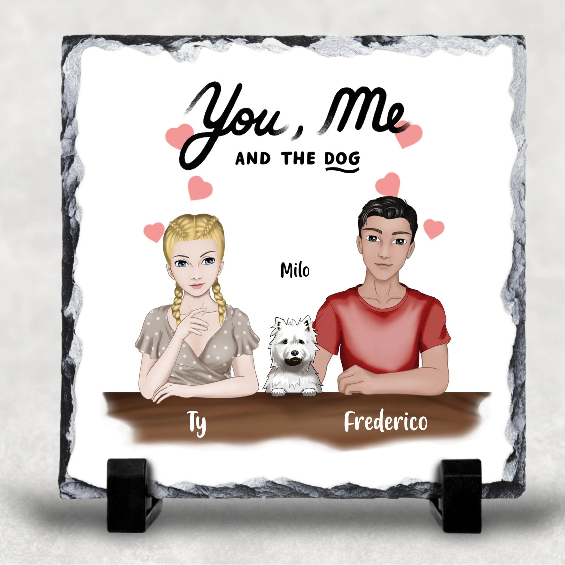 You Me And The Dog Custom Man And Woman Personalised Character Slate